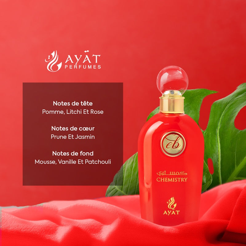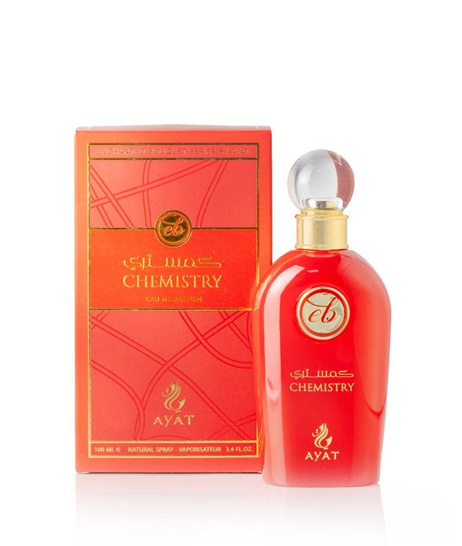 Chemistry is a vibrant and seductive fragrance, designed for those seeking a rich and passionate olfactory experience. This harmonious fragrance combines fruity, floral, and woody notes to create a captivating composition, evoking romance and seduction.