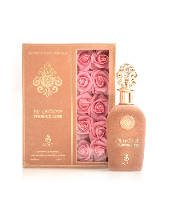 Eau de Parfum Phoenix Rose est une fragrance féminine de Dubai signée Ayat Perfumes. Dès les premières notes, un mélange rafraîchissant de pêche, mandarine et rose crée une ouverture lumineuse et fruitée, idéale pour l’été.