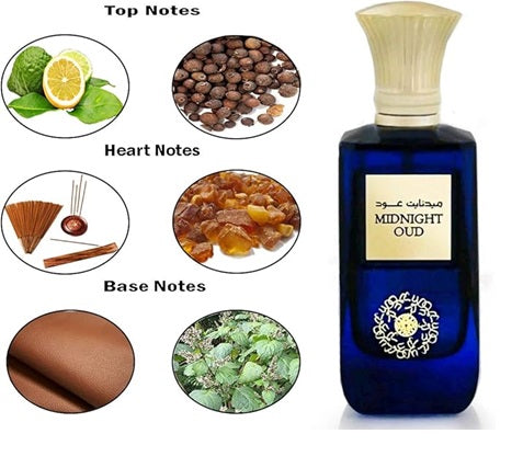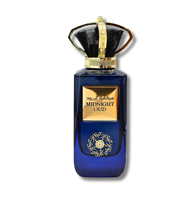Introducing Midnight Oud Eau de Parfum by Ard Al Zaafaran, a captivating fragrance that blends oriental richness with modern sophistication.